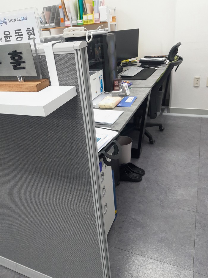 오픈 오피스 구조의 50평 작업 공간은 직원 35명이 밀집해 있어 바닥 왁스 탈락 속도가 빨랐습니다. 중앙 통로와 책상 주변을 중심으로 왁스가 거의 남아 있지 않은 상태였습니다. 김 팀장이 독일 명품 카처 마루 광택기로 전면 박리 후 친환경 왁스 2회 코팅을 시공했습니다. 왁스 건조 시간을 활용해 모든 책상 위와 서랍 외부를 극세사 천으로 닦았습니다. 모니터 뒷면과 키보드 주변의 먼지는 HEPA 청소기로 완전 흡입했습니다. 논현 사무실청소 에서 오픈 오피스 전체가 새것처럼 달라졌습니다.